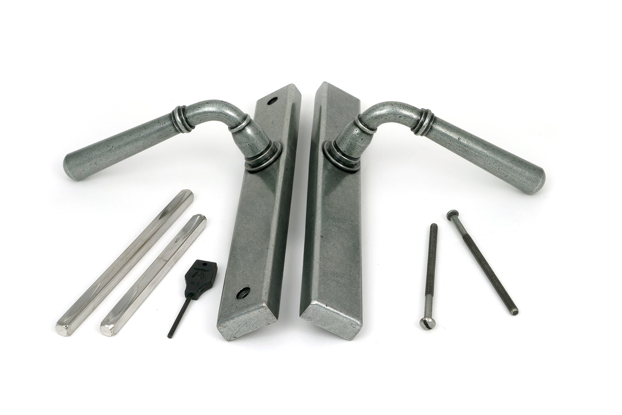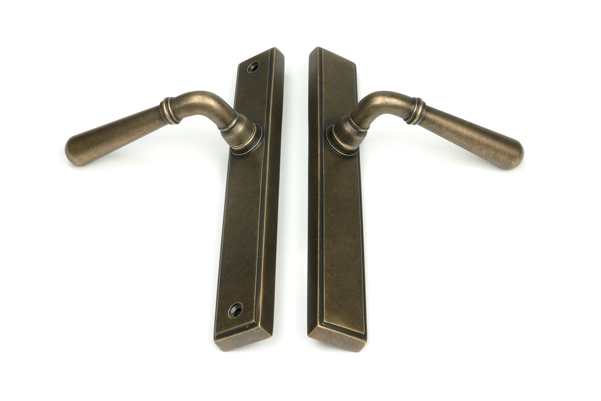 From The Anvil's Aged Bronze finish is forged from solid bronze containing a minimum of 85% copper. The bronze undergoes an extensive ageing process to give its distinctive appearance, characterised by dark, rich tones. During the final stages of manufacturing, a protective matt lacquer is applied to each product to help preserve its charming colour. Our Aged Bronze collection includes a variety of From The Anvil lever door handles, sash window hardware, window stays, letter plates, cabinet knobs, hinges, coat hooks and more. Discover the full range below...
